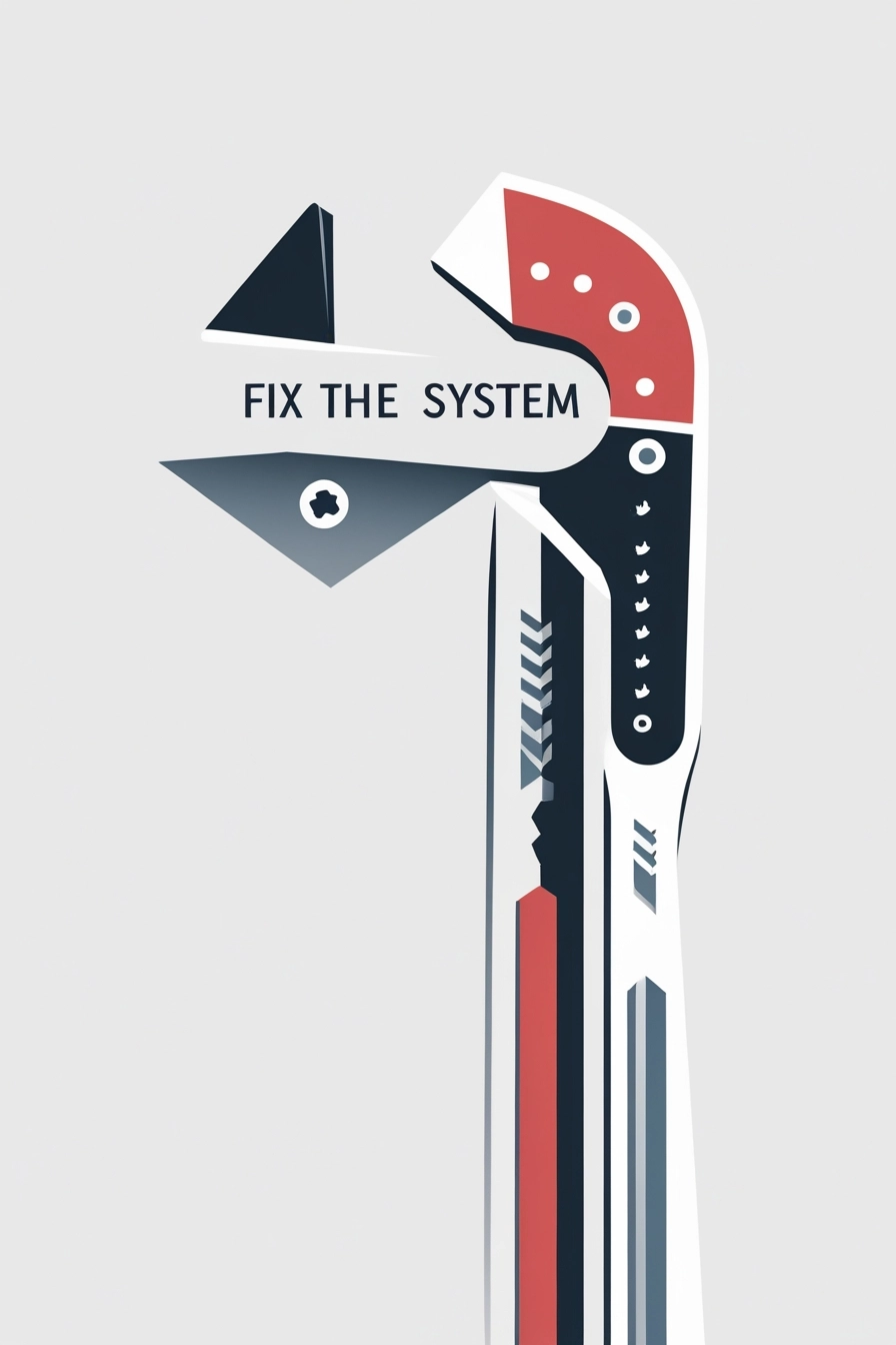 Minimalist wrench with 'Fix the System'